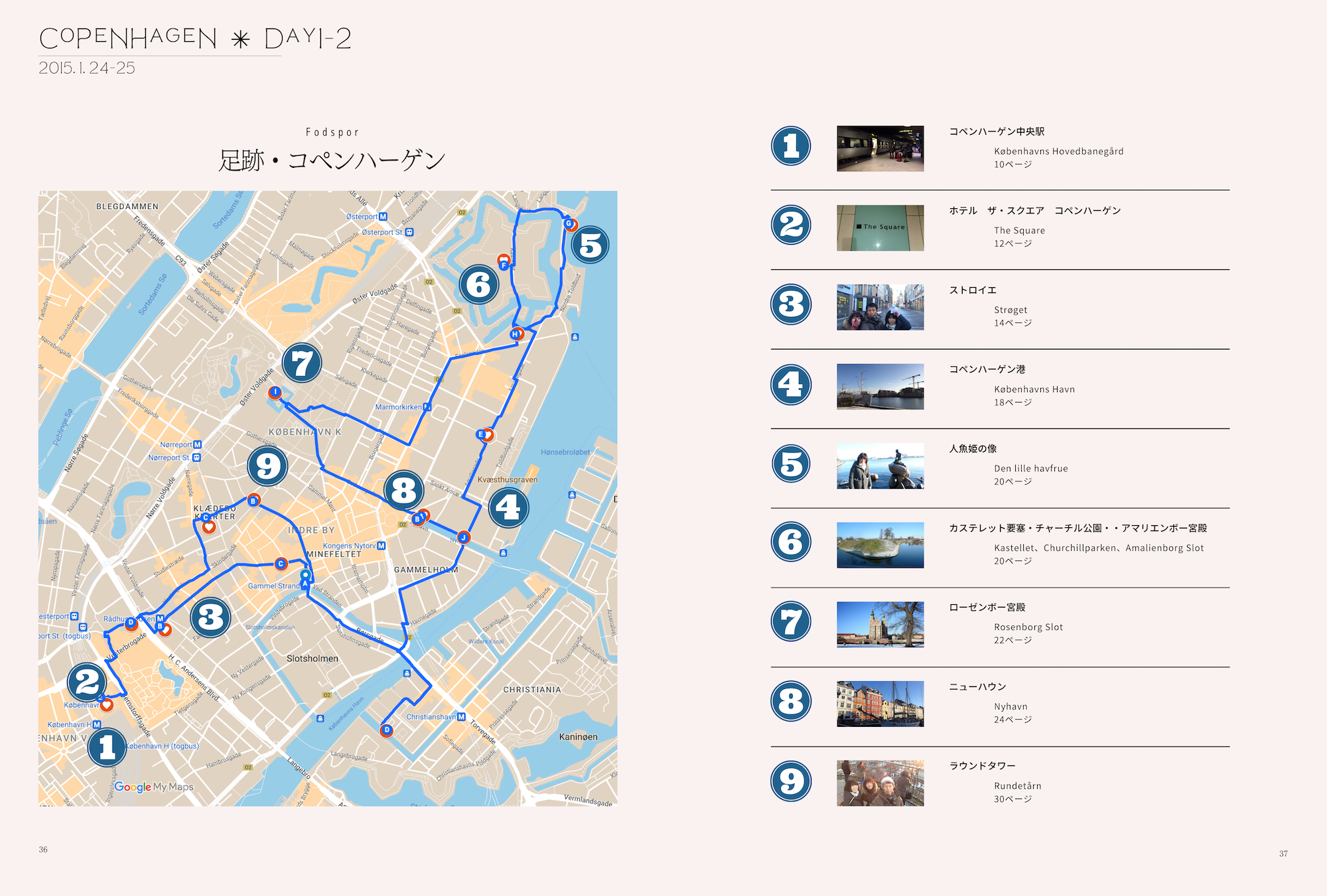 場所ごとに写真をまとめていき、文章は後から調べながら埋めました。旅行前に調べておけばよかった〜、という場所も多々ありましたが、あそこはこういう場所だったんだ、と発見もありとても楽しい作業でした。